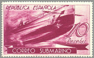 sello correo submarino. normal y hojita