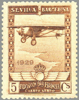 sello pro exposiciones de sevilla y barcelona. aéreo