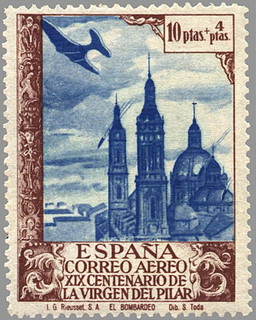 sello xix centenario de la virgen del pilar a zaragoza. aéreo