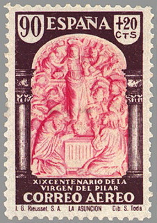 sello xix centenario de la virgen del pilar a zaragoza. aéreo