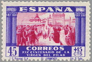 sello xix centenario de la venida de la virgen del pilar a zaragoza.