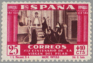 sello xix centenario de la venida de la virgen del pilar a zaragoza.