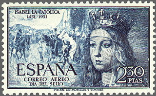 sello v centenario de isabel la católica correo. aéreo